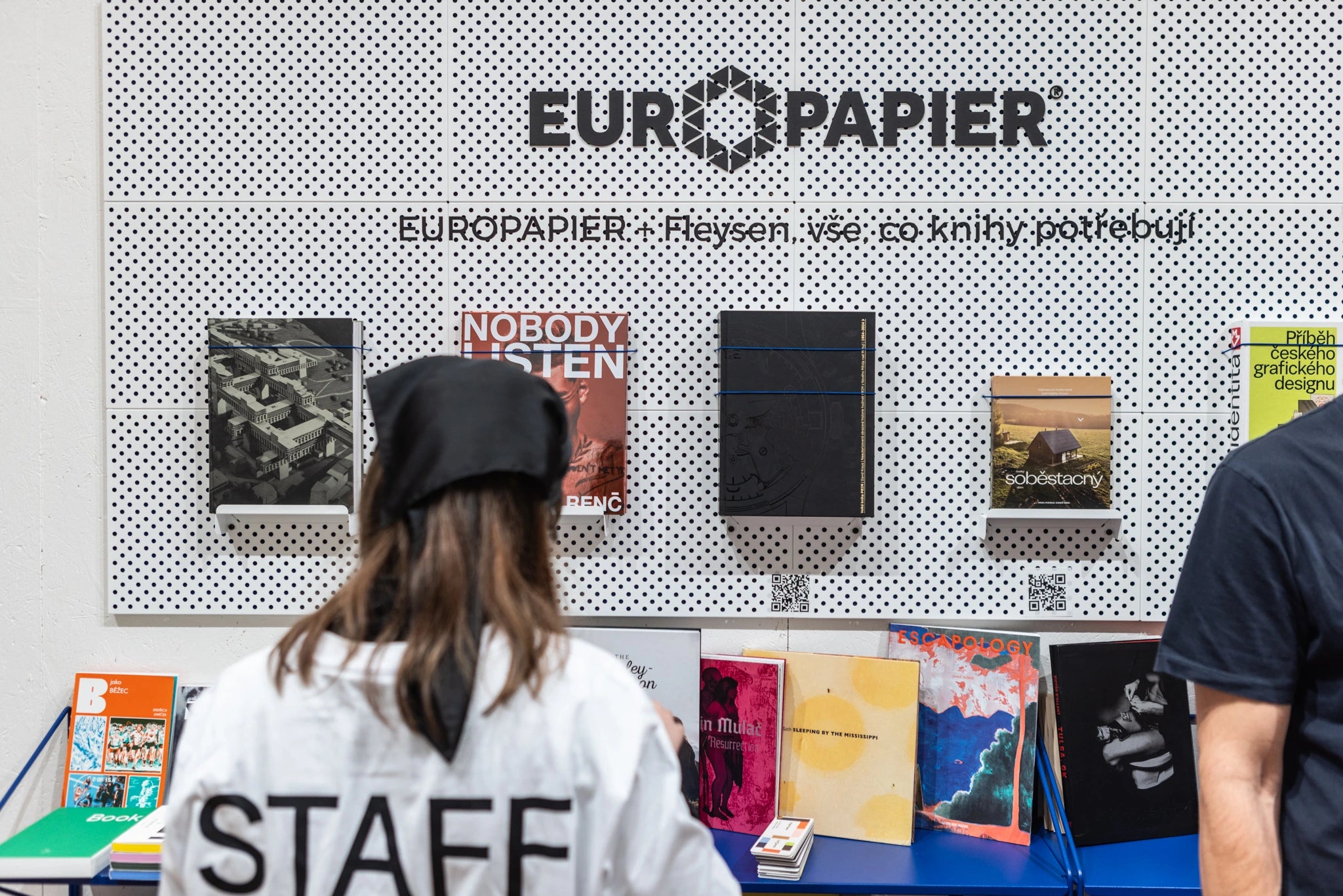 Věděli jsme, že chceme vystavit knihy, ale chyběl nám mobiliář. Designblok nám doporučil několik firem a Fleysen nás zaujal hned na první schůzce. Designéři přišli s jasným konceptem a už od začátku měli představu, jak bude stánek vypadat. Ukázali nám výkresy hned na první schůzce, což nás nadchlo. „Zadání bylo jasné – knihovna, protože jsme chtěli vystavovat knihy. Také jsme potřebovali palety s papírem, protože jsme papíráci a prodáváme papír. A když jsme tady celý den, slouží to i jako relaxační zóna, kam si můžeme sednout, když tu zrovna nikdo není.“
