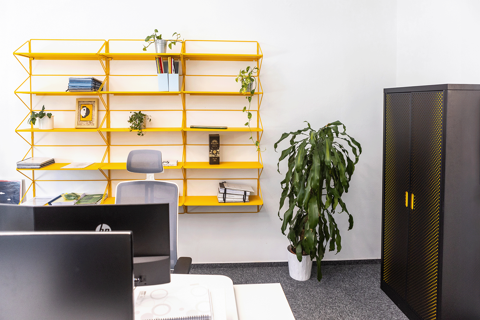Právě naopak. Báli jsme se spíš, aby barvy ladily k sobě. Nakonec se žlutá ukázala jako perfektní doplňková barva, která zapadla do celkového konceptu našich kanceláří.