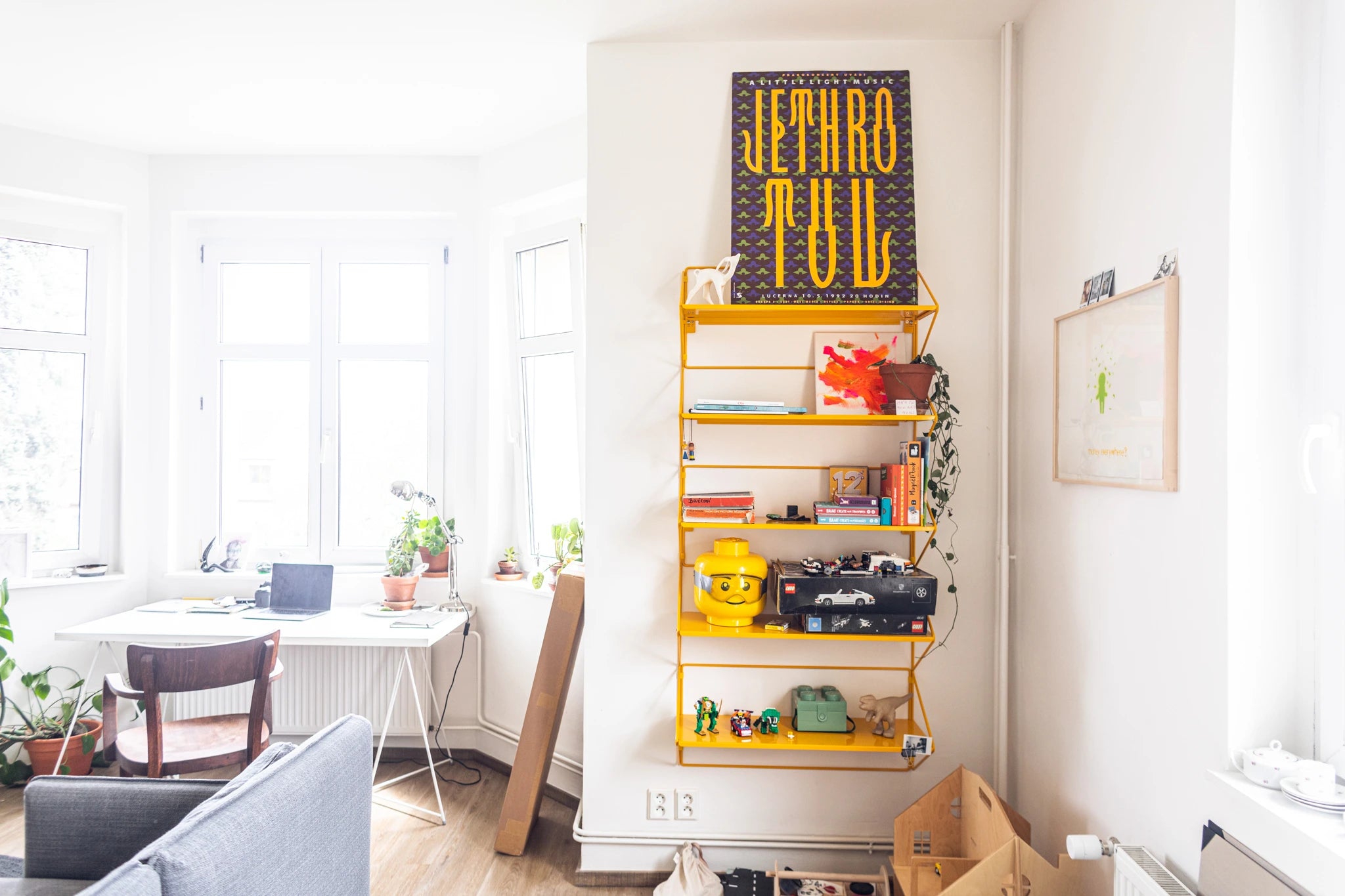 Klára und Tomáš haben bei uns bisher zwei hohe grüne Standregale Nr. 1210 , zwei untere weiße Regale Nr. 1211 und ein hängendes gelbes Regal Nr. 1213 gekauft . Lassen Sie sich auch in anderen Haushalten inspirieren, z.B. im Wohnzimmer der israelischen Designerin Vika oder bei DIY-Liebhaberin Markéta .