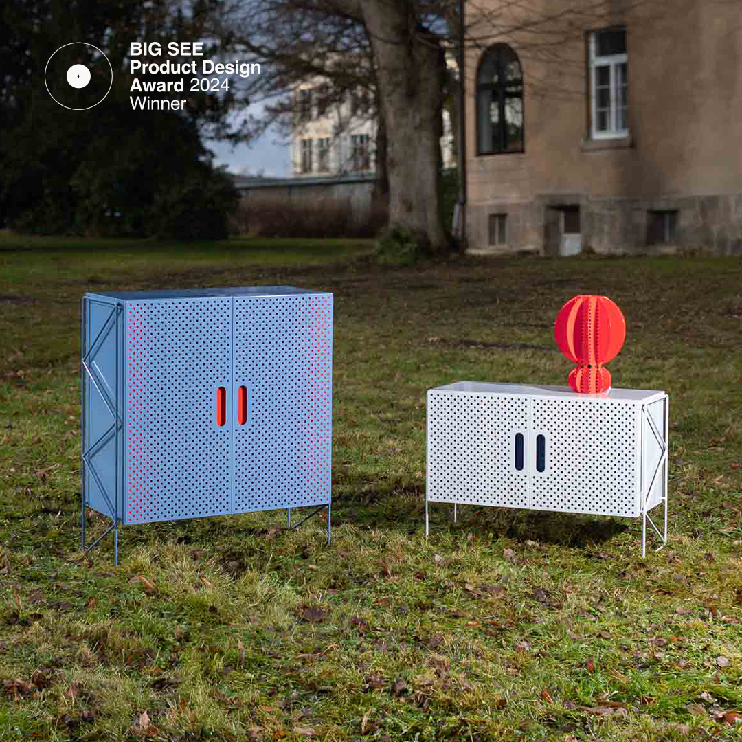 Der Weg zu diesem Erfolg begann mit der Zusammenarbeit mit den talentierten Designern Michal Strach und Filip Mirbauer . Ihre kreative Vision und Liebe zum Detail bildeten die Grundlage für die Kreation des Schranks Nr. 1311, der die Jury mit seiner minimalistischen Eleganz und dem raffinierten Lochdesign beeindruckte. Dieser auf schlanken Beinen stehende Metallschrank stellt eine Harmonie zwischen einem modernen Ausdruck und der Zweckmäßigkeit einer subtilen Metallkonstruktion dar.
