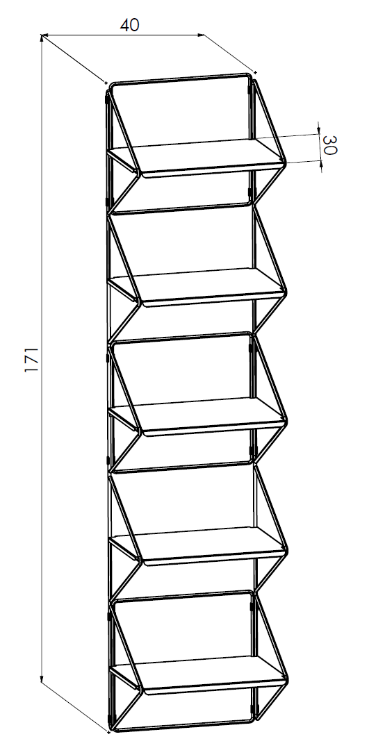 Pět pevných kovových polic poskytuje prostor pro všechny věci každodenní potřeby. Každá z nich unese až 20 kg, takže regál zůstává stabilní i při vyšším zatížení. Minimalistický design s čistými liniemi působí vzdušně, ale konstrukčně je pevný a odolný. Vyrobeno v Česku s důrazem na kvalitu, dlouhou životnost a recyklovatelný materiál.