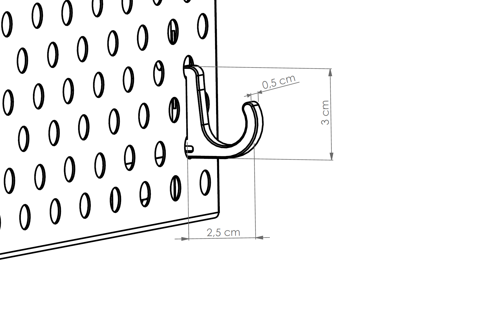 Tato sada pěti háčků z našich 3D tiskáren je perfektním doplňkem k vaší kovové nástěnce pro zavěšení různých předmětů. Háčky můžete zakoupit samostatně a podle svých potřeb tak sestavit vlastní sadu nástěnky.